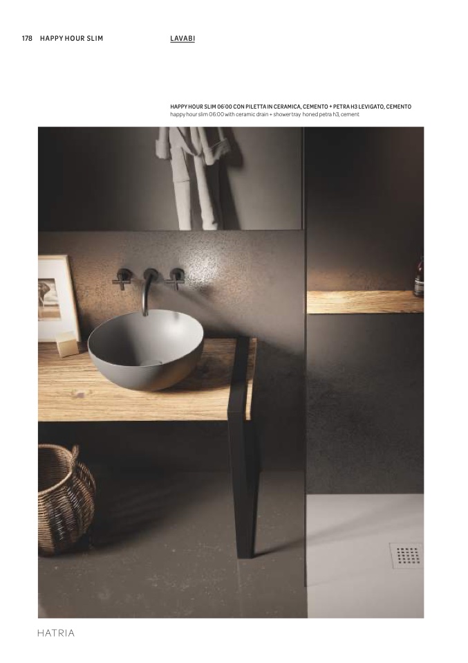 HAPPY HOUR SLIM 06:00 CON PILETTA IN CERAMICA, CEMENTO + PETRA H3 LEVIGATO, CEMENTO