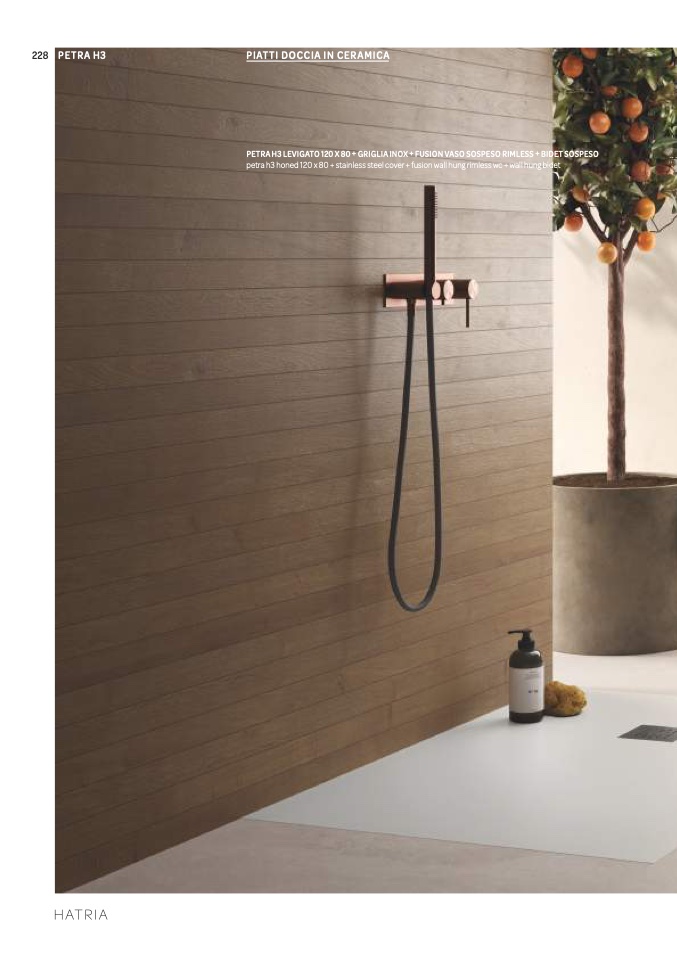 PETRA H3 LEVIGATO 120 X 80 + GRIGLIA INOX + FUSION VASO SOSPESO RIMLESS + BIDET SOSPESO