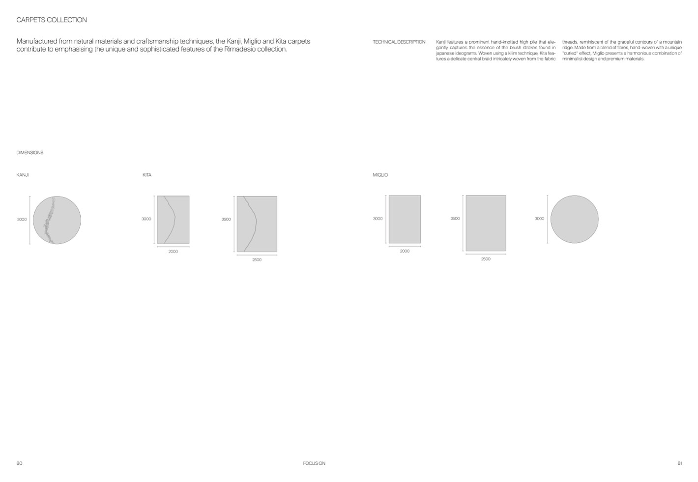Manufactured from natural materials and craftsmanship techniques, the Kanji, Miglio and Kita carpets