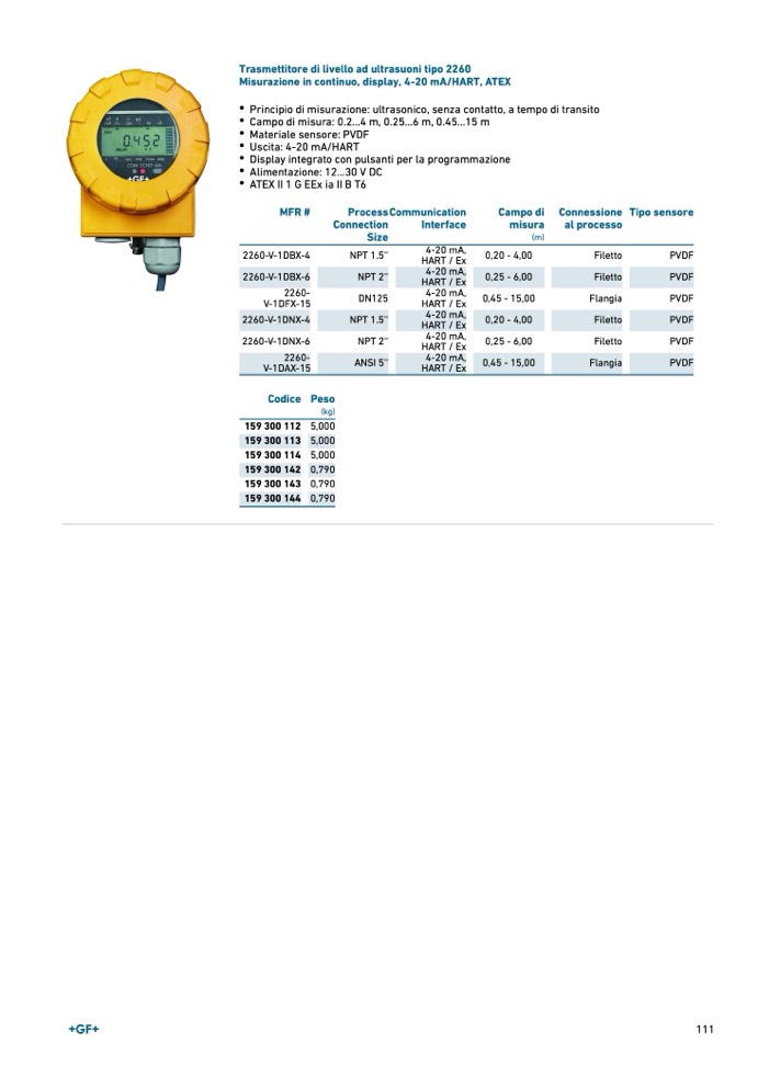 • Campo di misura: 0.2...4 m, 0.25...6 m, 0.45...15
