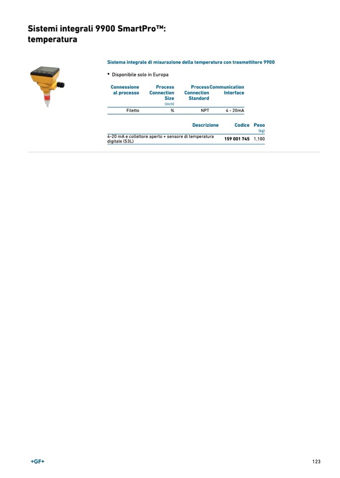 Sistema integrale di misurazione della temperatura con trasmettitore 990