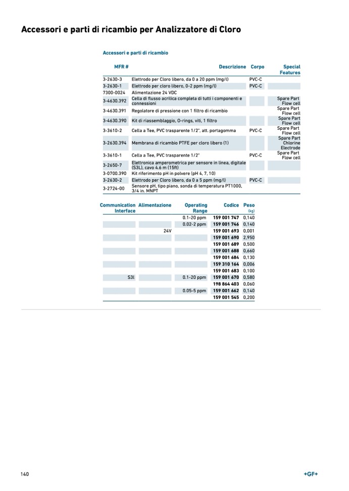 Accessori e parti di ricambio per Analizzatore di Cloro