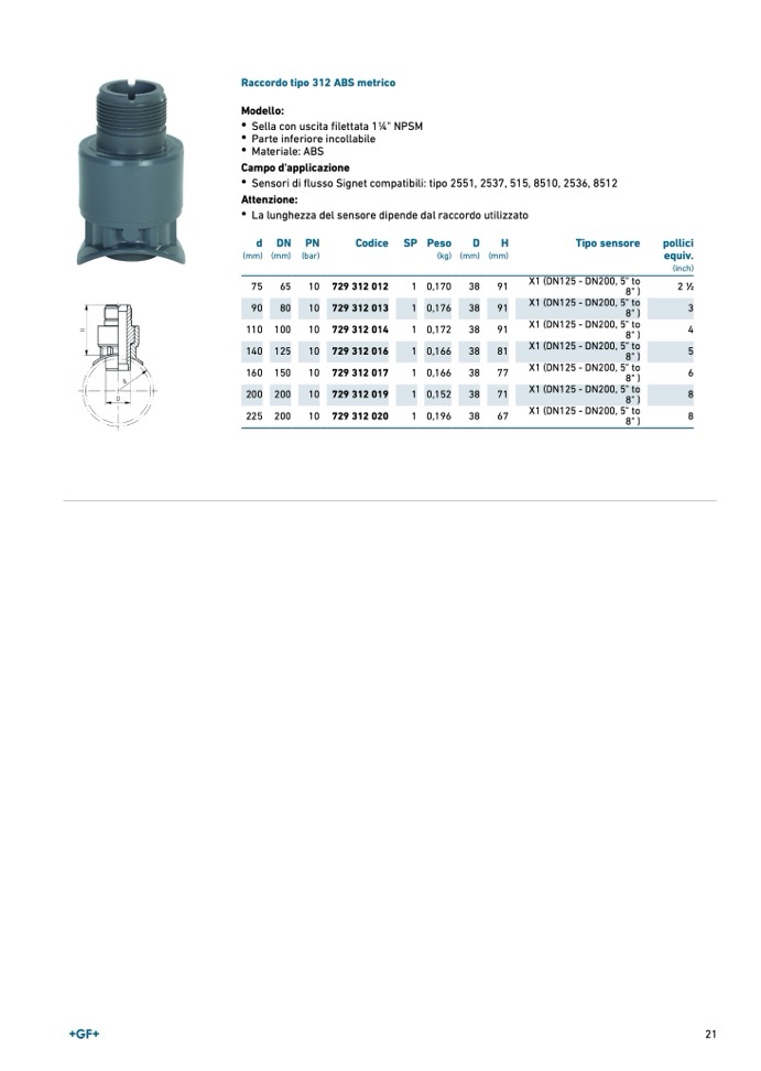 Raccordo tipo 312 ABS metric