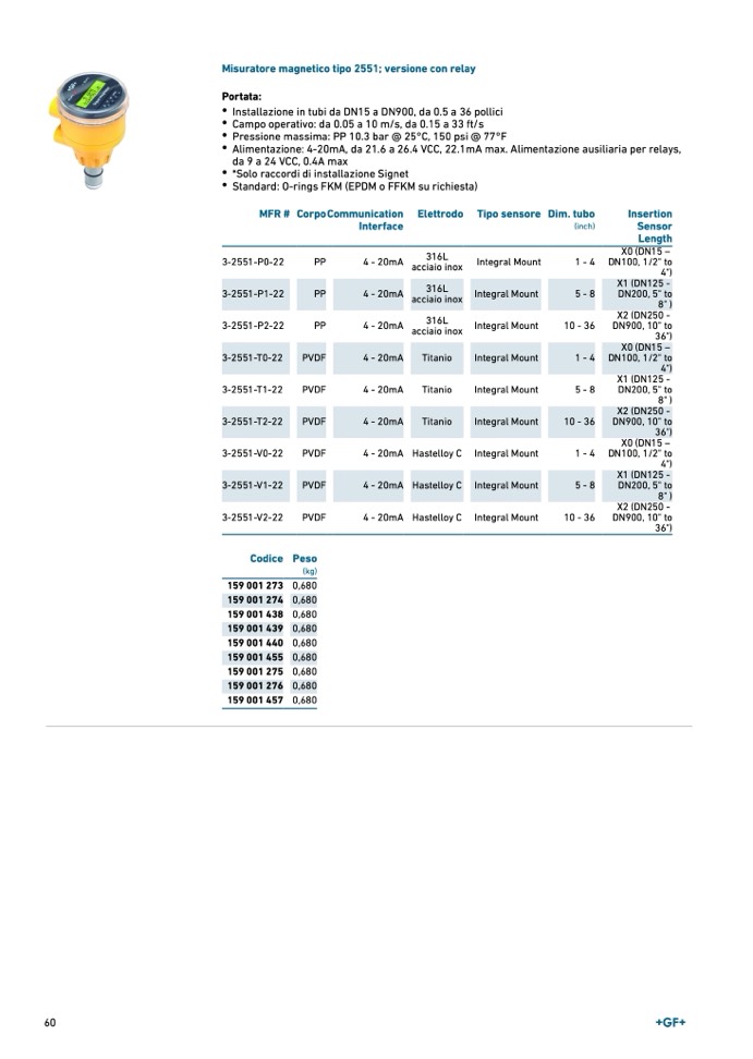 • Installazione in tubi da DN15 a DN900, da 0.5 a 36 pollici