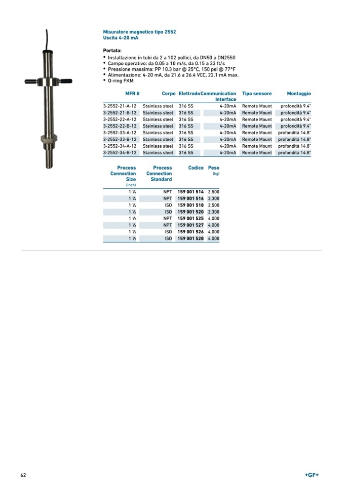• Alimentazione: 4-20 mA, da 21.6 a 26.4 VCC, 22.1 mA max.