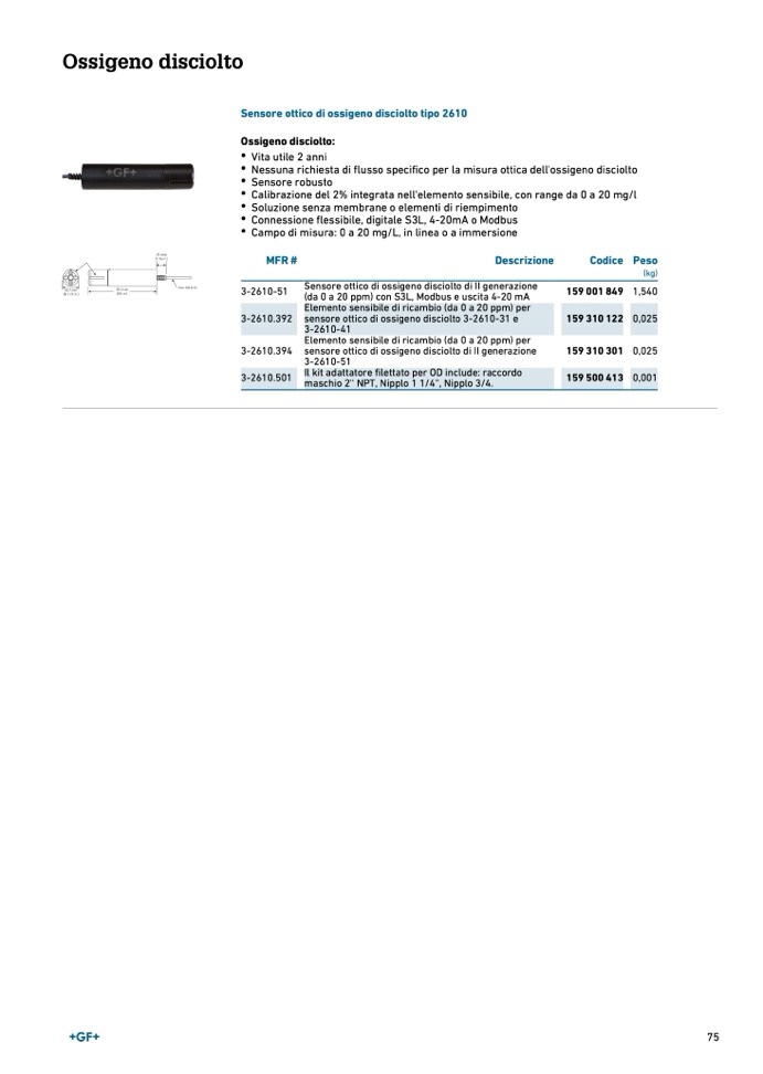 • Campo di misura: 0 a 20 mg/L, in linea o a immersione