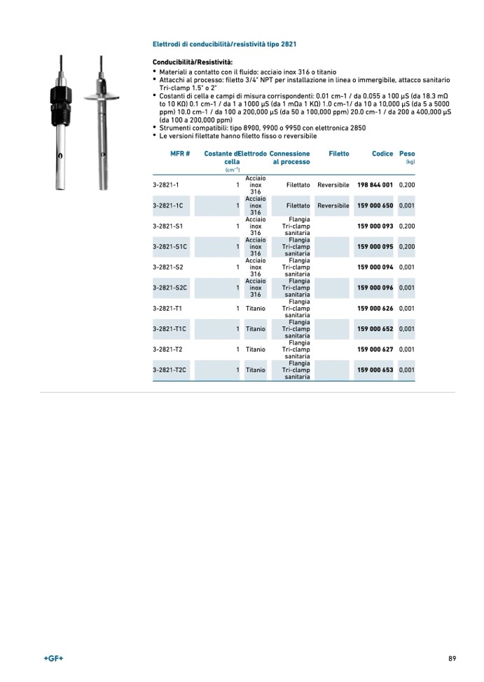 to 10 KΩ) 0.1 cm-1 / da 1 a 1000 µS (da 1 mΩa 1 KΩ) 1.0 cm-1/ da 10 a 10,000 µS (da 5 a 5000