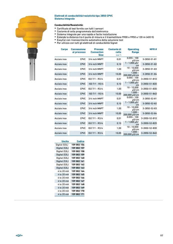 • Per utilizzo con tutti gli elettrodi di conducibilità Signe