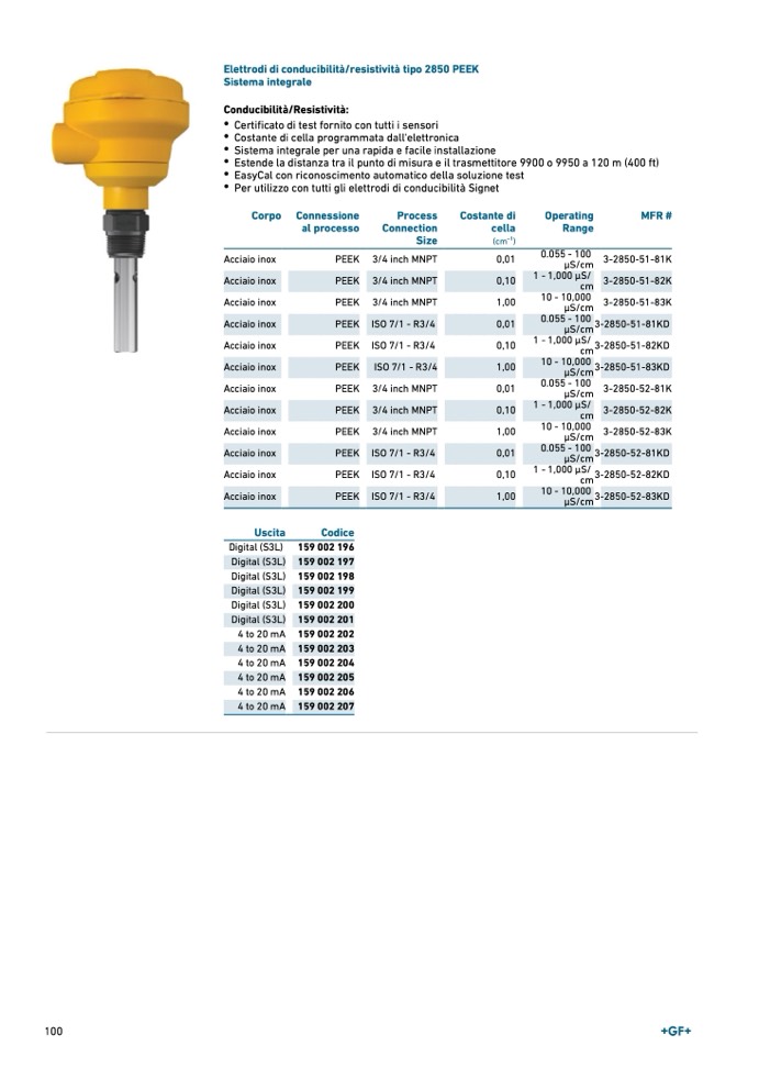 • Per utilizzo con tutti gli elettrodi di conducibilità Signet