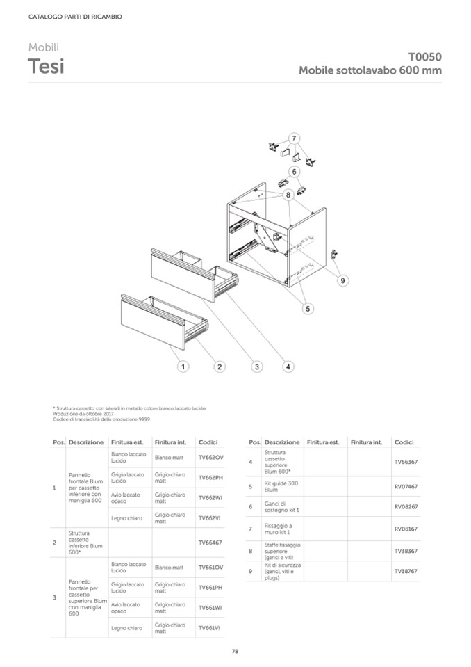 * Struttura cassetto con laterali in metallo colore bianco laccato lucido