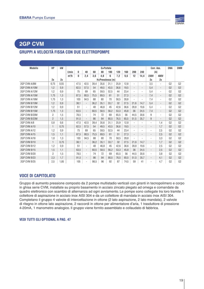 in ghisa serie CVM, installate su proprio basamento in acciaio zincato piegato ad omega e comandate da