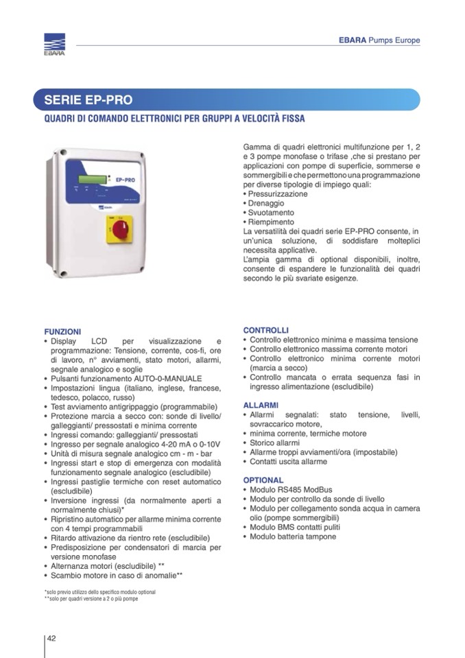 **solo per quadri versione a 2 o più pompe