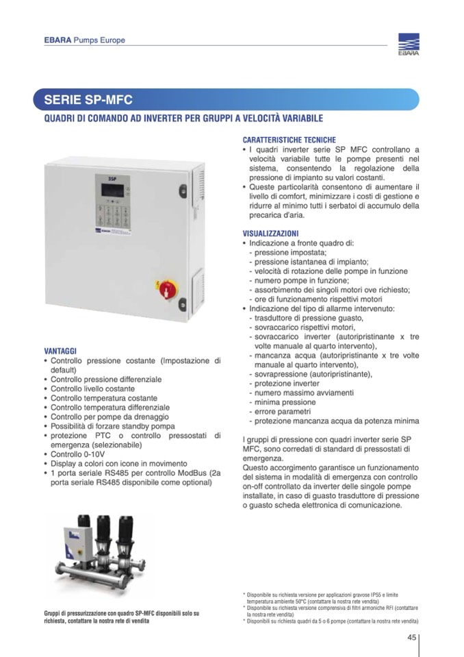 Gruppi di pressurizzazione con quadro SP-MFC disponibili solo su