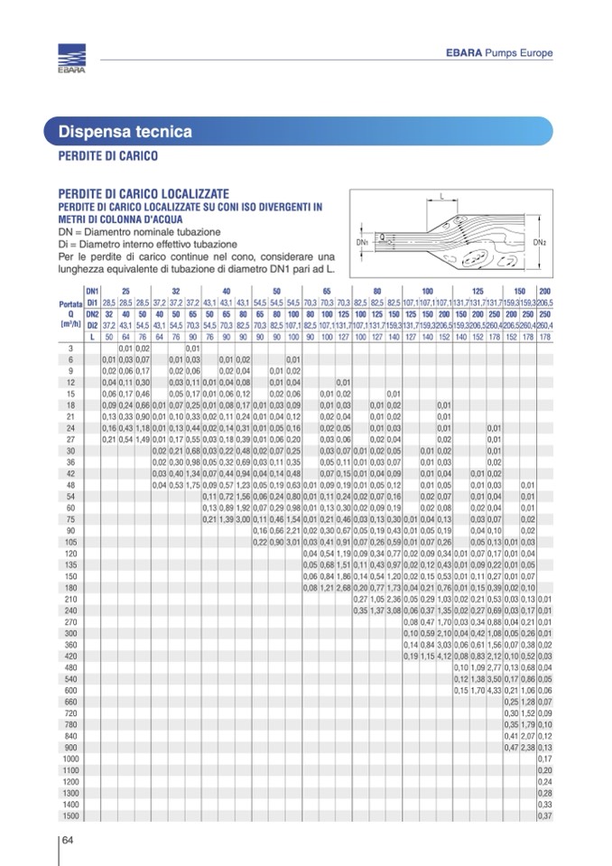 lunghezza equivalente di tubazione di diametro DN1 pari ad L.