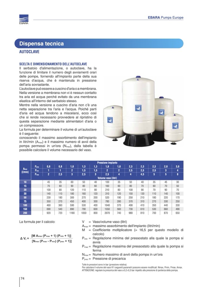 ATTENZIONE: regolare la precarica del vaso a 0,2÷0,3 bar rispetto alla pressione di partenza della pompa.