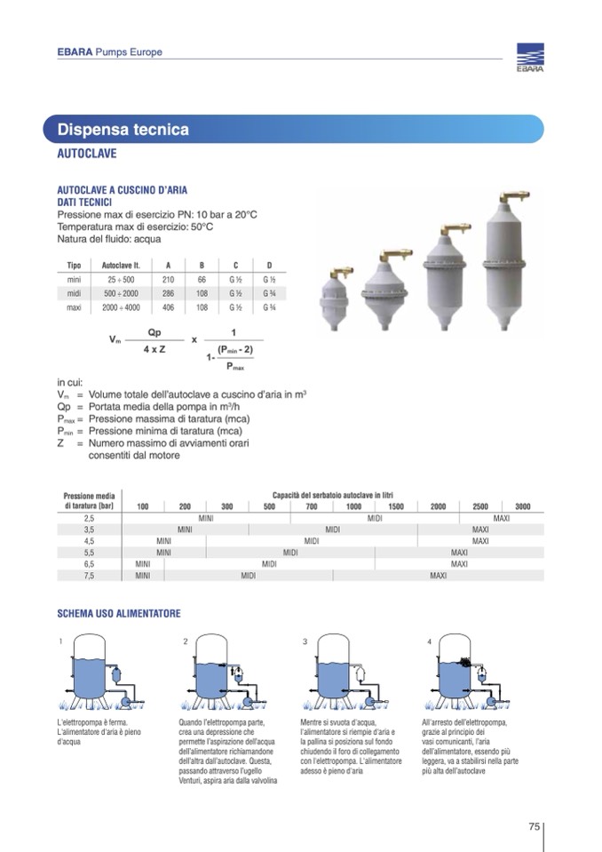 Capacità del serbatoio autoclave in litri