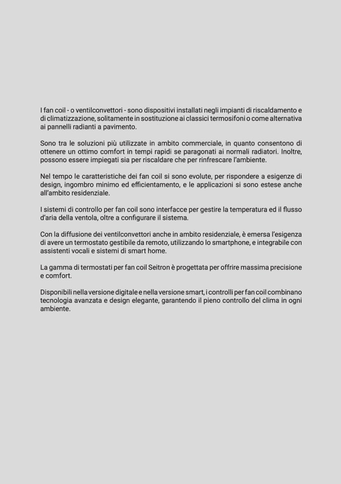 La gamma di termostati per fan coil Seitron è progettata per offrire massima precisione