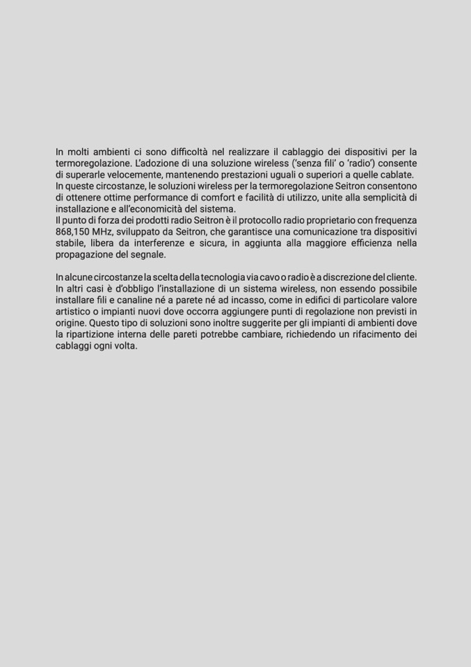 In queste circostanze, le soluzioni wireless per la termoregolazione Seitron consentono