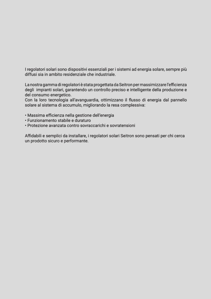 La nostra gamma di regolatori è stata progettata da Seitron per massimizzare l’efficienza