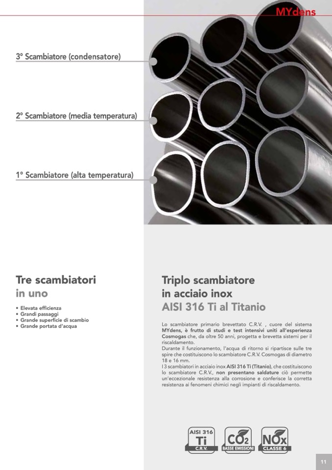 spire che costituiscono lo scambiatore C.R.V. Cosmogas di diametro