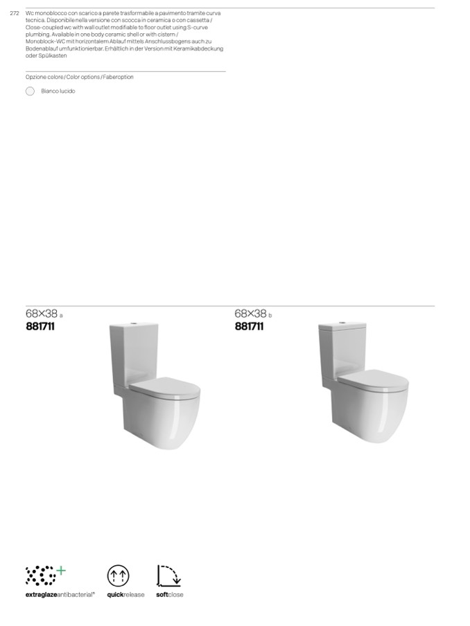 272 Wc monoblocco con scarico a parete trasformabile a pavimento tramite curva