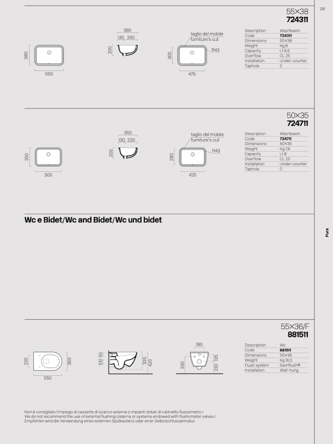 Non è consigliato l’impiego di cassette di scarico esterne o impianti dotati di rubinetto flussometro /