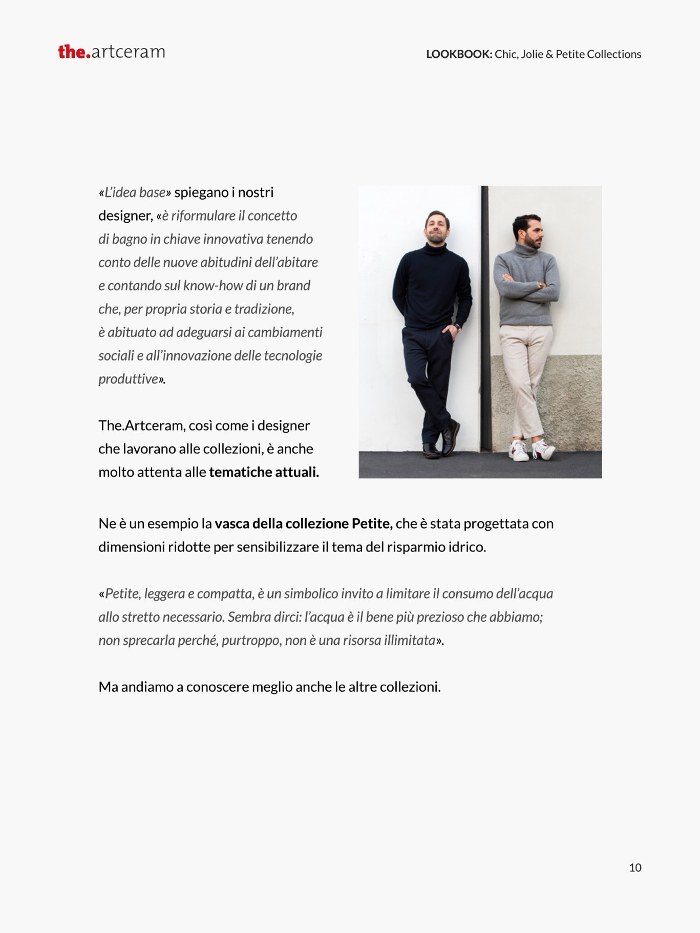 «Petite, leggera e compatta, è un simbolico invito a limitare il consumo dell’acqua