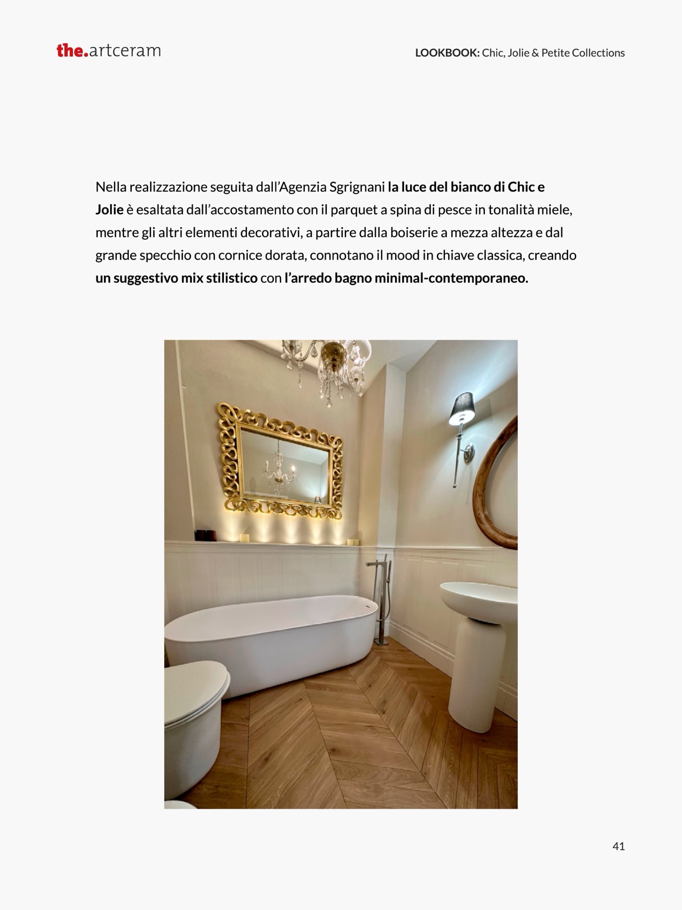 Jolie è esaltata dall’accostamento con il parquet a spina di pesce in tonalità miele,
