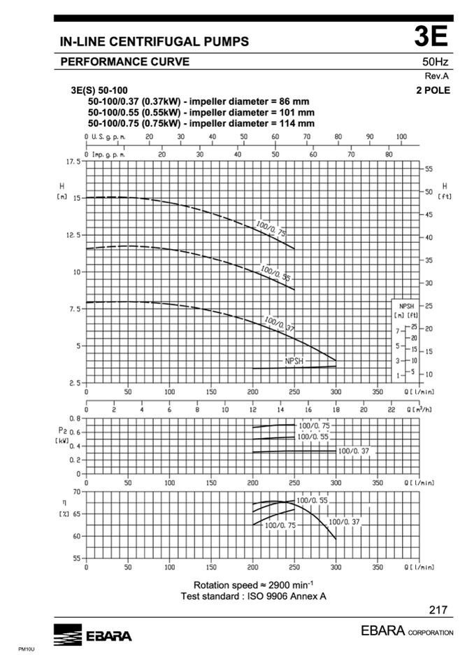 50-100/0.37 (0.37kW) - impeller diameter = 86 mm