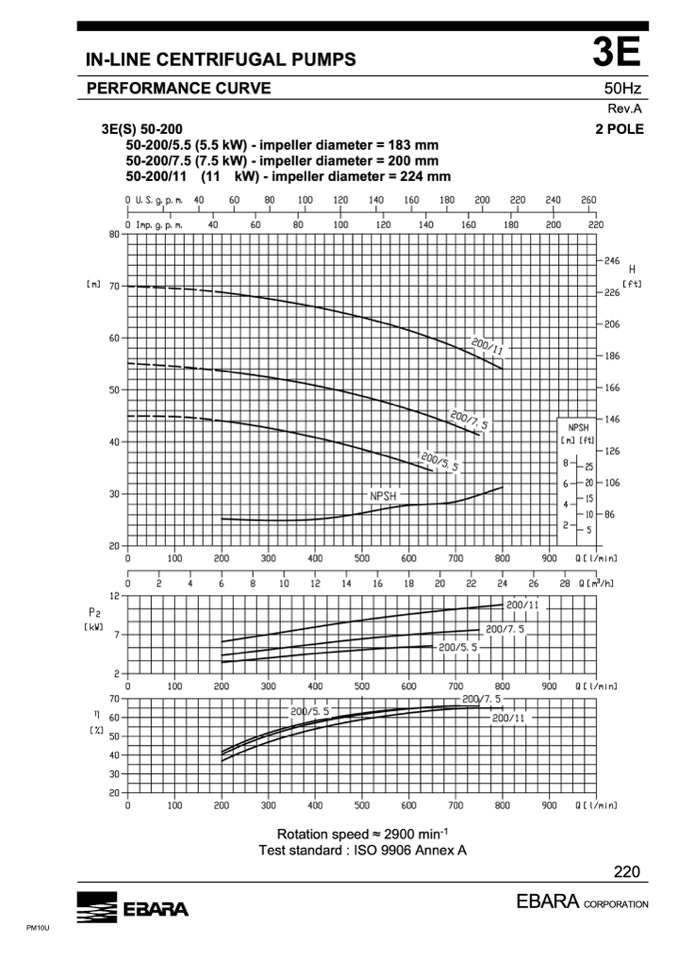 50-200/5.5 (5.5 kW) - impeller diameter = 183 mm
