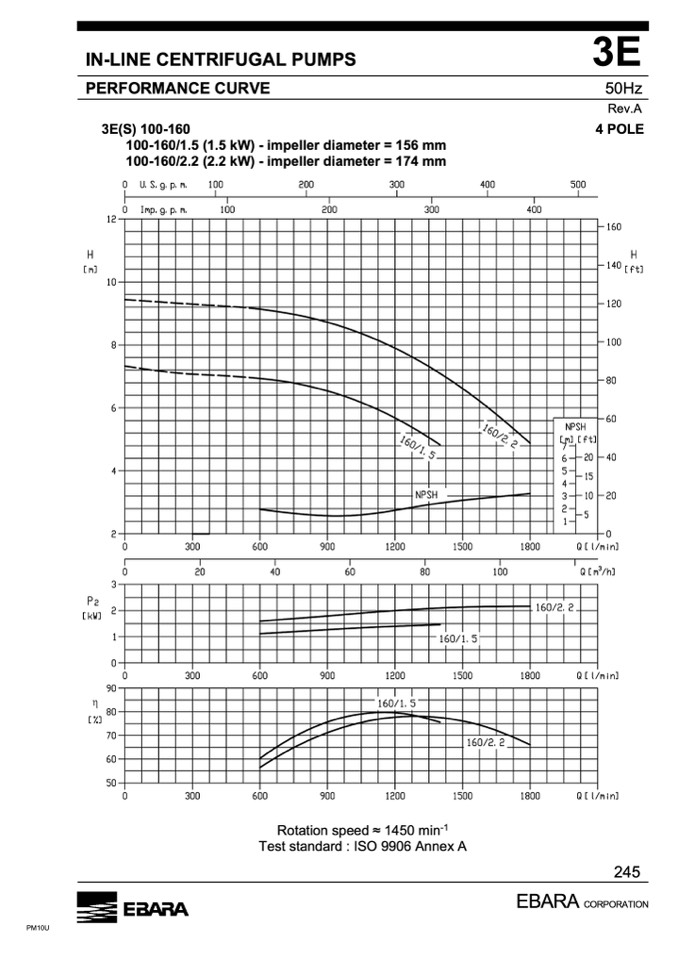100-160/1.5 (1.5 kW) - impeller diameter = 156 mm