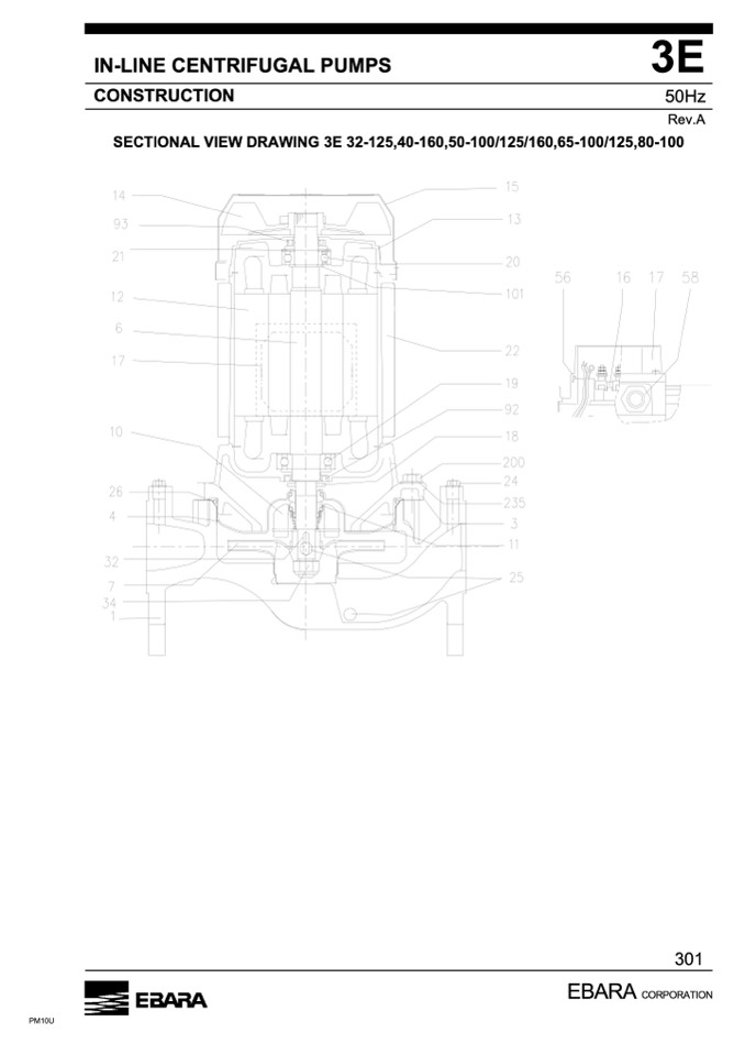 SECTIONAL VIEW DRAWING 3E 32-125,40-160,50-100/125/160,65-100/125,80-100