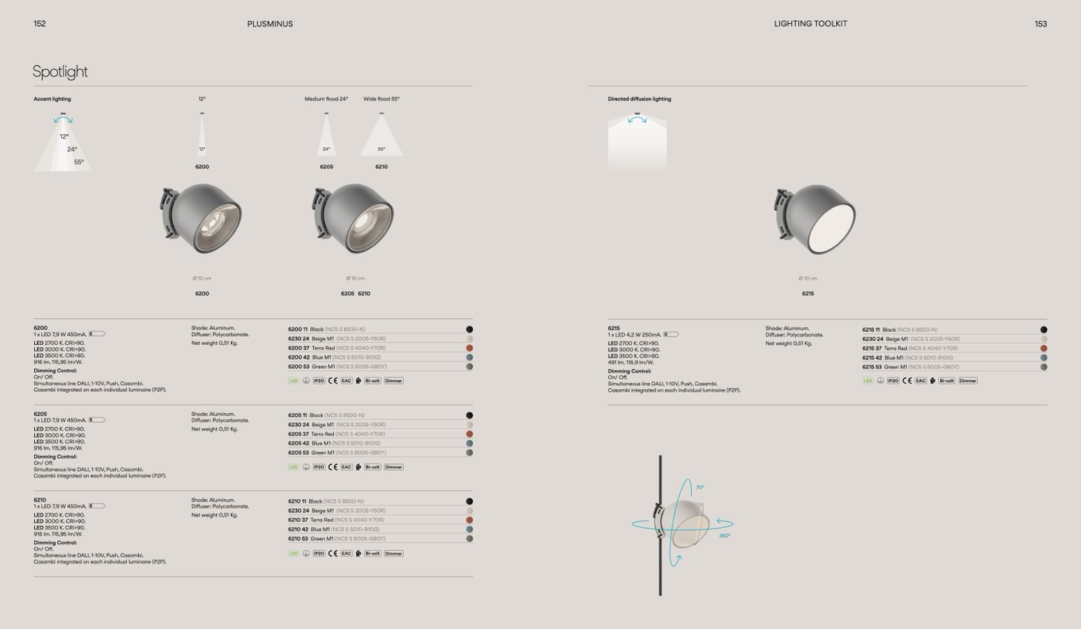 LED 3500 K. CRI>90.