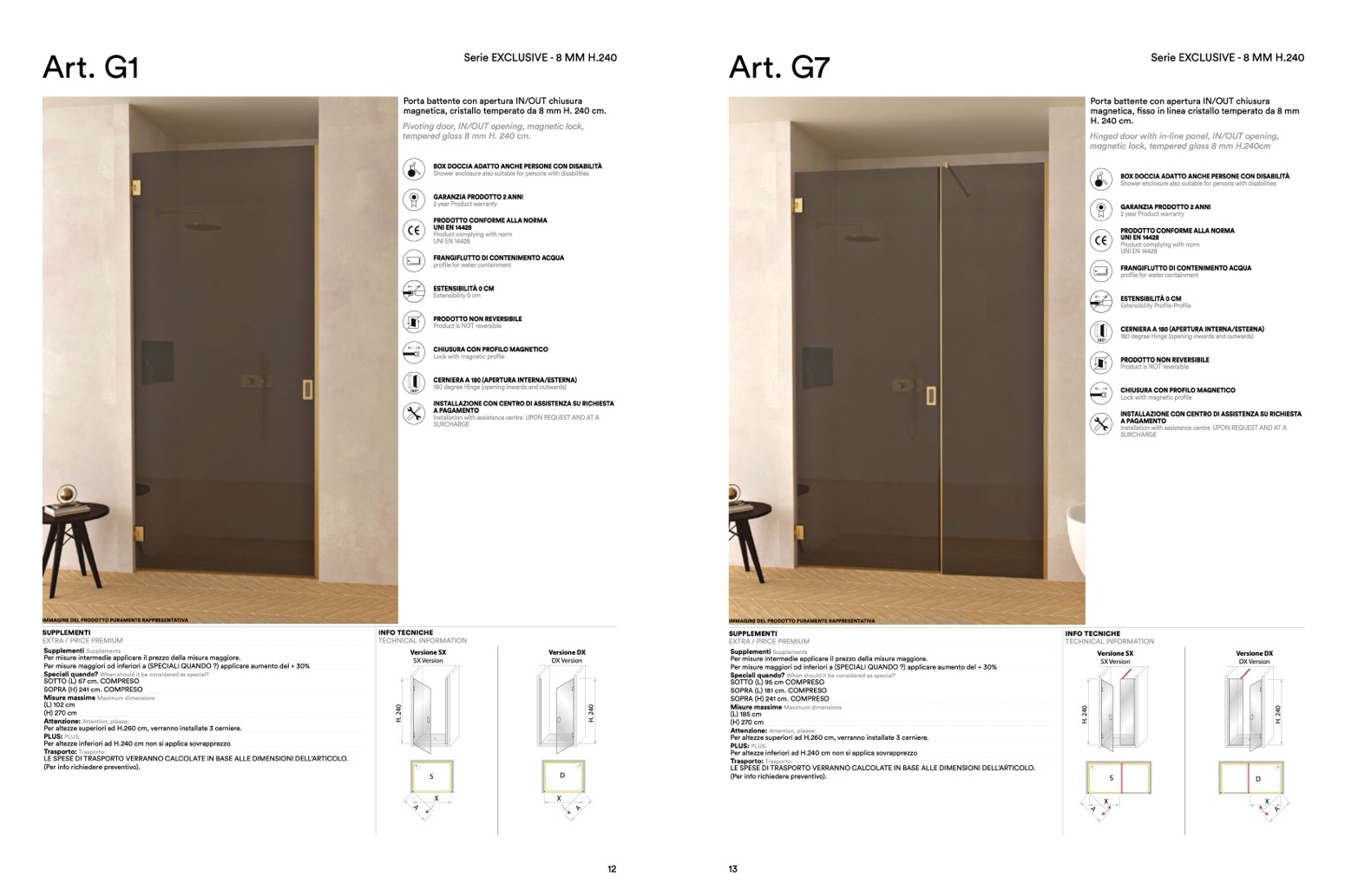 Per altezze inferiori ad H.240 cm non si applica sovrapprezzo