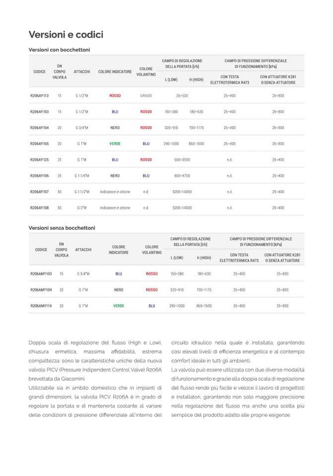valvola PICV (Pressure Indipendent Control Valve) R206A