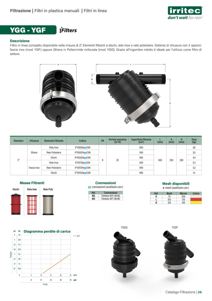 fascia inox (mod. YGF) oppure Ghiera in Poliammide rinforzata (mod. YGG). Grazie all’ingombro ridotto è ideale per l’utilizzo come filtro di