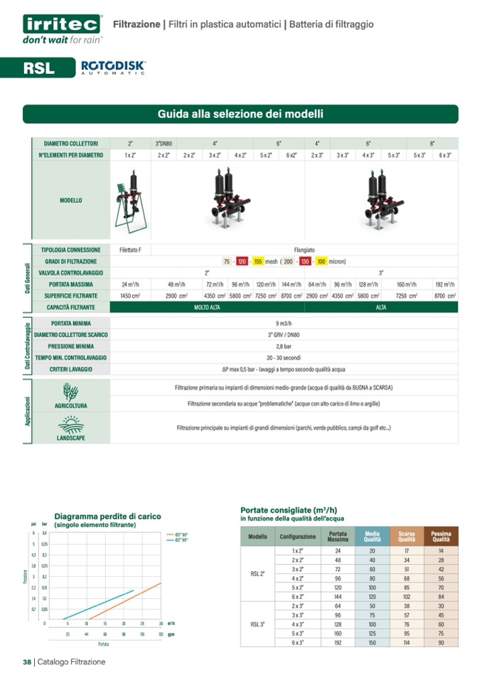 Filtrazione primaria su impianti di dimensioni medio-grande (acqua di qualità da BUONA a SCARSA)