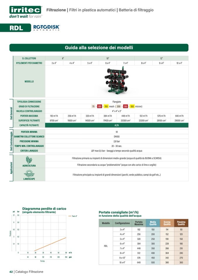 Filtrazione primaria su impianti di dimensioni medio-grande (acqua di qualità da BUONA a SCARSA)