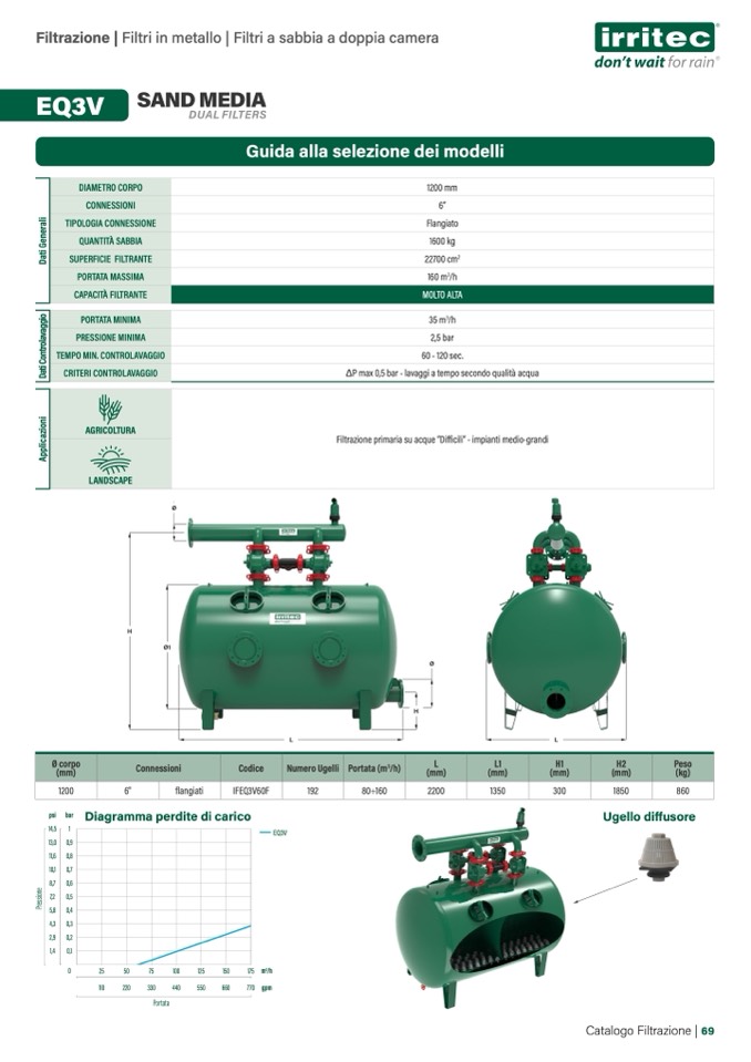 ΔP max 0,5 bar - lavaggi a tempo secondo qualità acqua