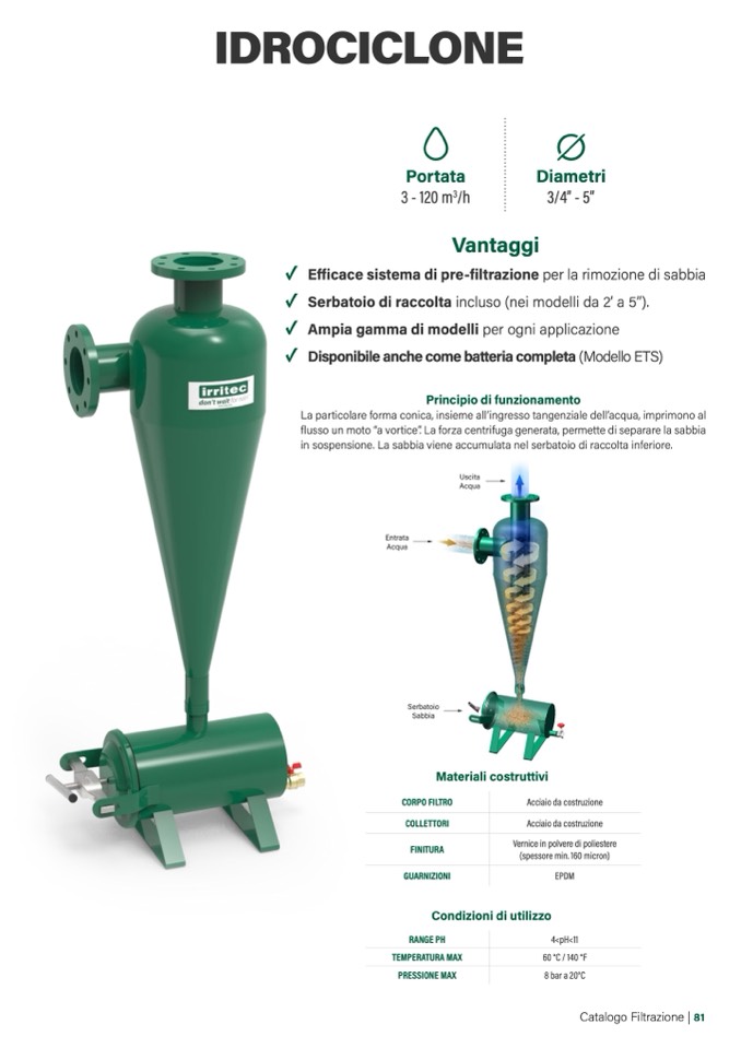 La particolare forma conica, insieme all’ingresso tangenziale dell’acqua, imprimono al