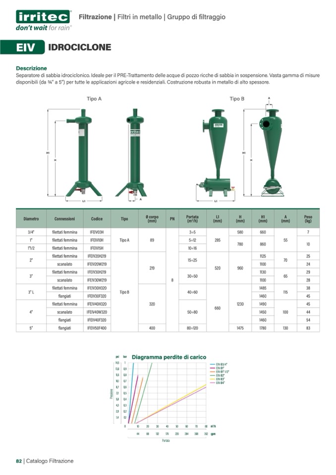 disponibili (da 3⁄4” a 5”) per tutte le applicazioni agricole e residenziali. Costruzione robusta in metallo di alto spessore.
