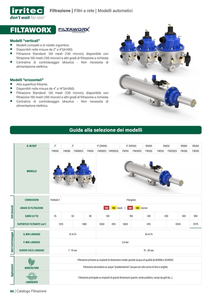 Filtrazione primaria su impianti di dimensioni medio-grande (acqua di qualità da BUONA a SCARSA)
