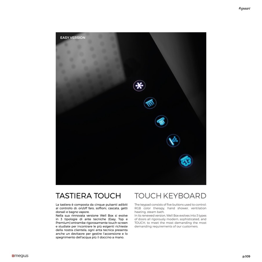 al controllo di: on/off faro, soffioni, cascata, getti