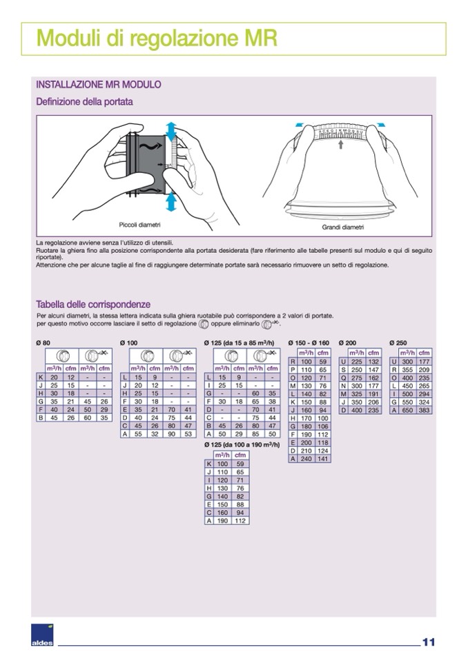 Attenzione che per alcune taglie al fine di raggiungere determinate portate sarà necessario rimuovere un setto di regolazione.