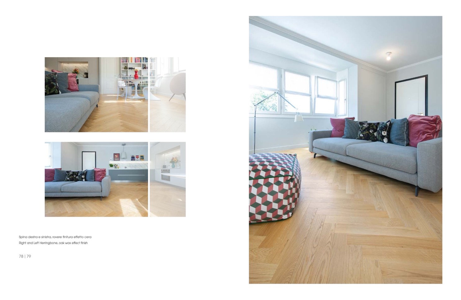 Right and Left Herringbone, oak wax effect finish