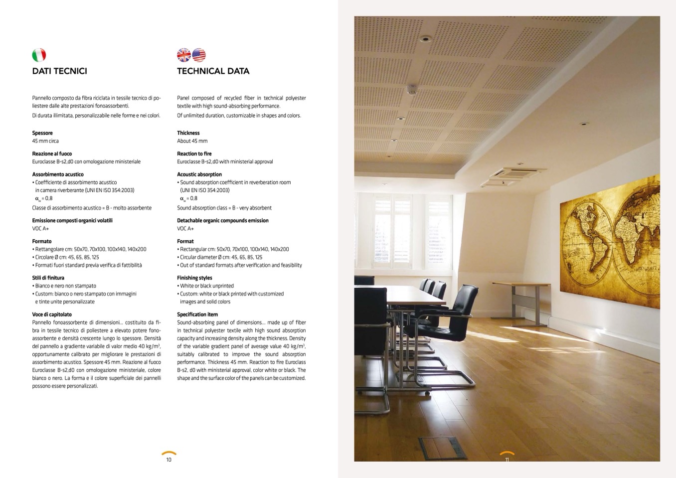 assorbimento acustico. Spessore 45 mm. Reazione al fuoco