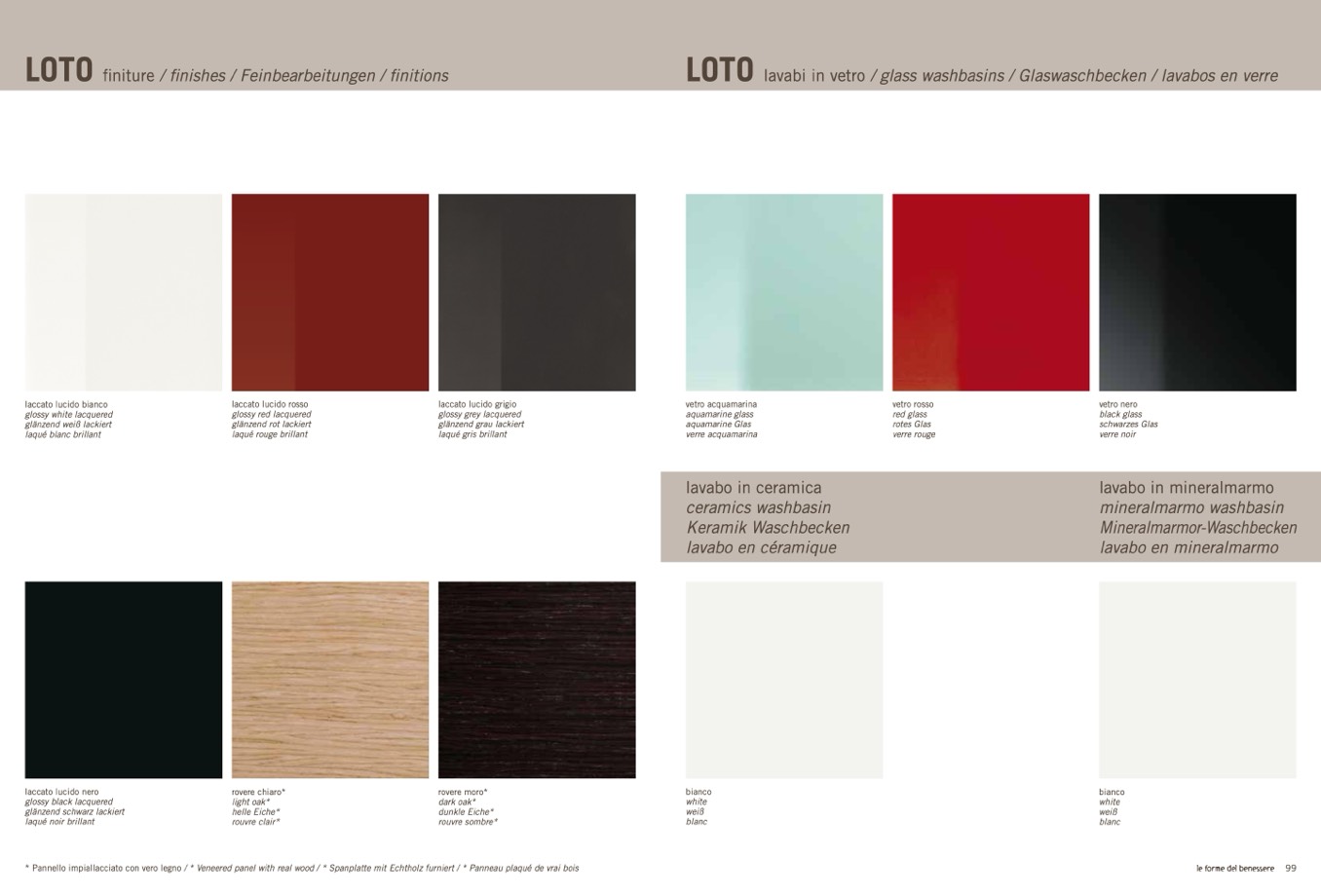 * Pannello impiallacciato con vero legno / * Veneered panel with real wood / * Spanplatte mit Echtholz furniert / * Panneau plaqué de vrai bois