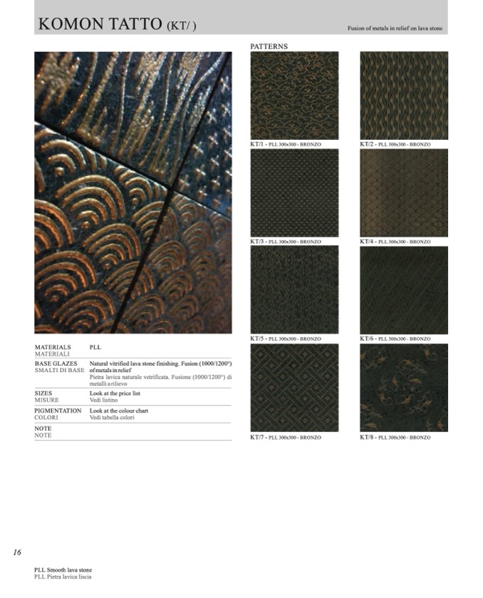 Natural vitrified lava stone finishing. Fusion (1000/1200°)