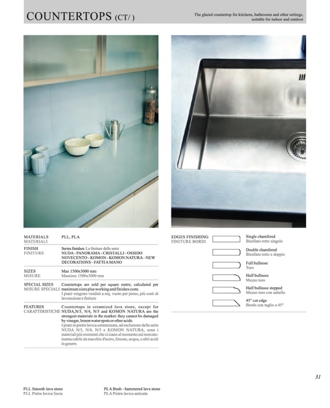 I piani in pietra lavica ceramizzata, ad esclusione della serie