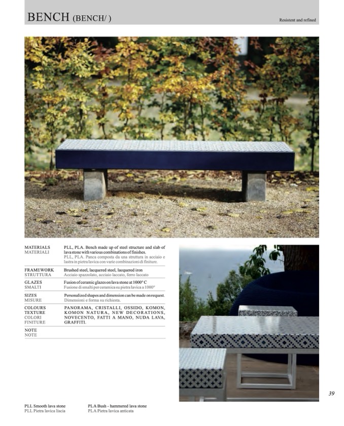 PLL, PLA. Bench made up of steel structure and slab of